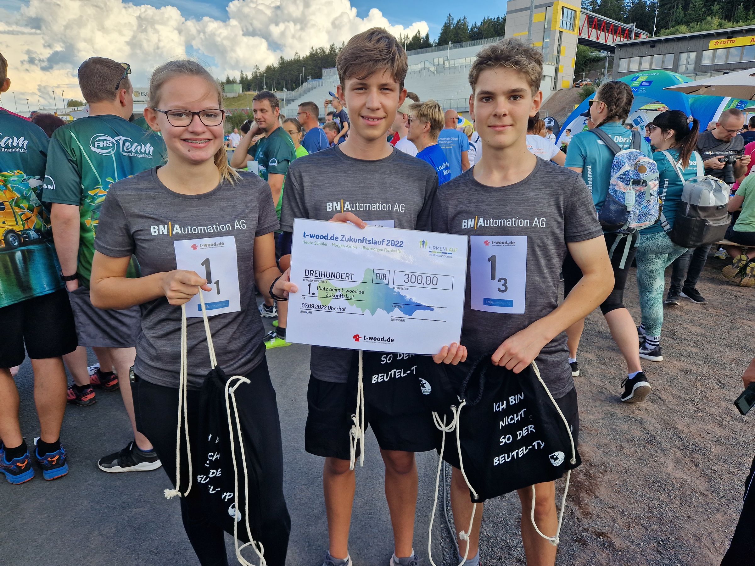 Beim t-wood.de-Zukunftslauf ging für uns wieder eine Schülerstaffel unseres Partnergymnasiums „Goetheschule Ilmenau“ an den Start. Die 3 Schüler gaben alles, erkämpften sich den ersten Platz auf dem Treppchen und füllten ihre Klassenkasse mit einer Siegprämie. Ein tolles Ergebnis, welches das 100-jährige Schuljubiläum der Goetheschule in dieser Woche krönt.